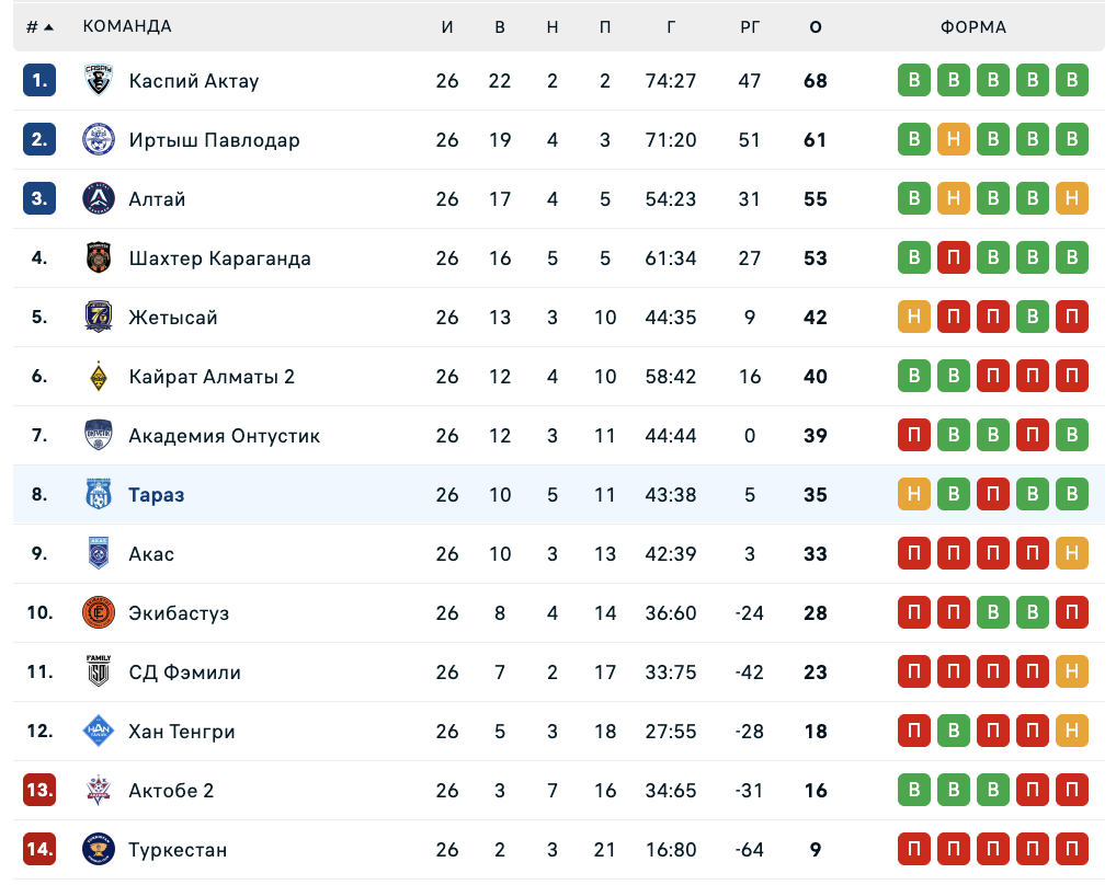 По итогам прошлого сезона Первой лиги Казахстана "Тараз" занял восьмое место в турнирной таблице.