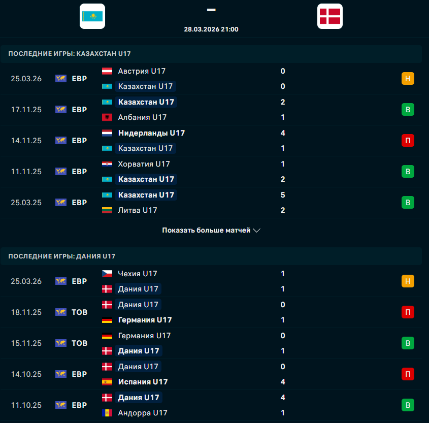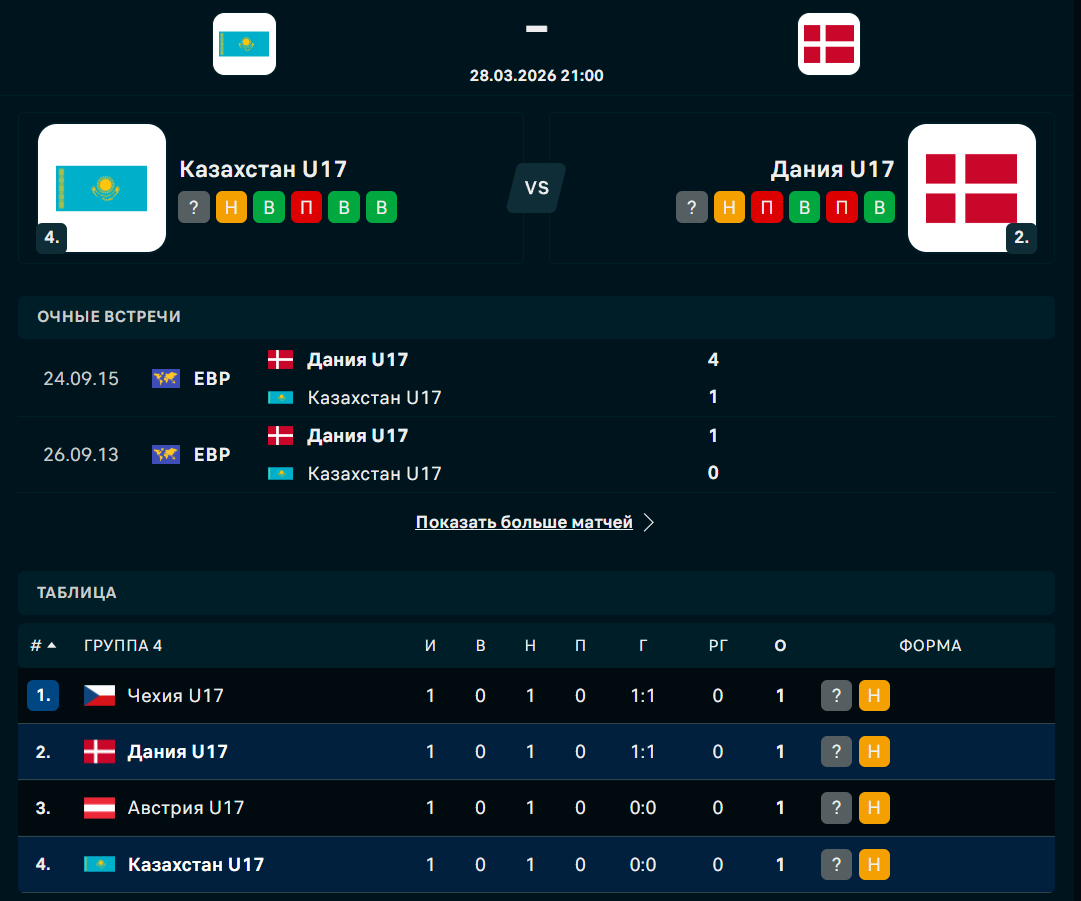 Казахстан - Дания: прямая трансляция матча отбора Евро U-17