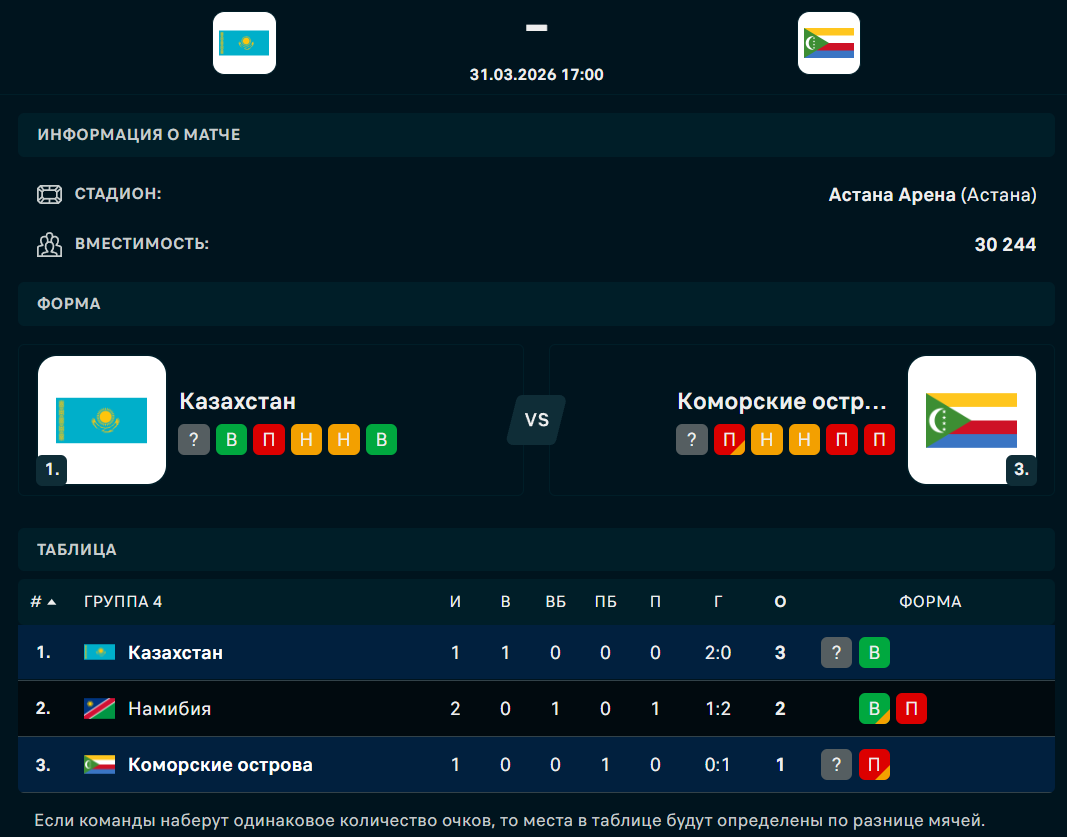 Прямая трансляция матча Казахстан - Коморские острова на Кинопоиске