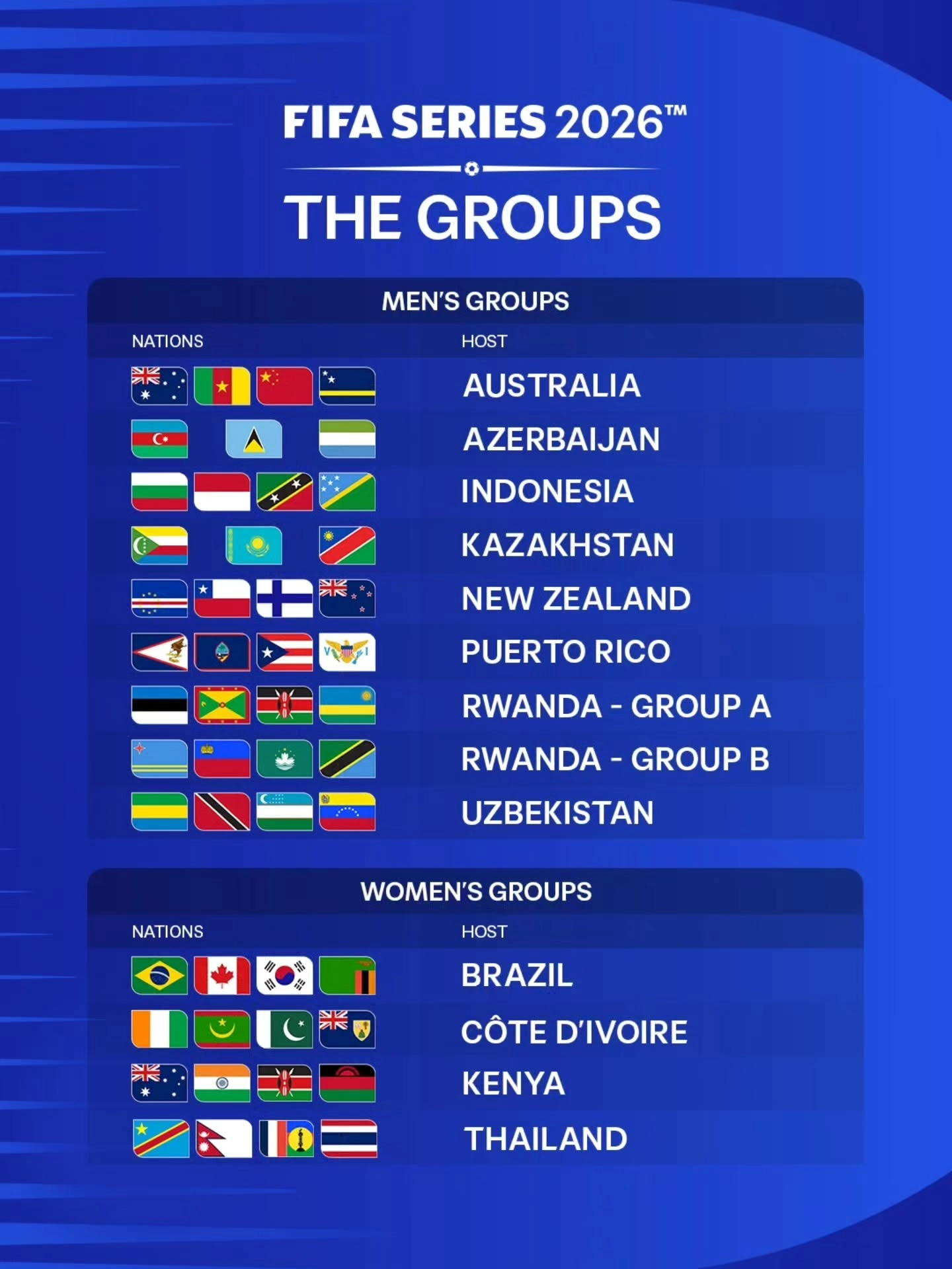 Другие группы FIFA Series выиграли Австралия, Азербайджан, Болгария, Финляндия, Пуэрто-Рико, Руанда, Аруба и Узбекистан.