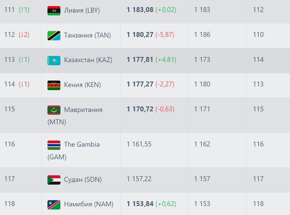 По данным аналитического портала football-ranking.com, Казахстан 4,81 балла и поднялся на 113-е место в рейтинге ФИФА. Обновление на официальном ресурсе ФИФА будет доступно в середине месяца.