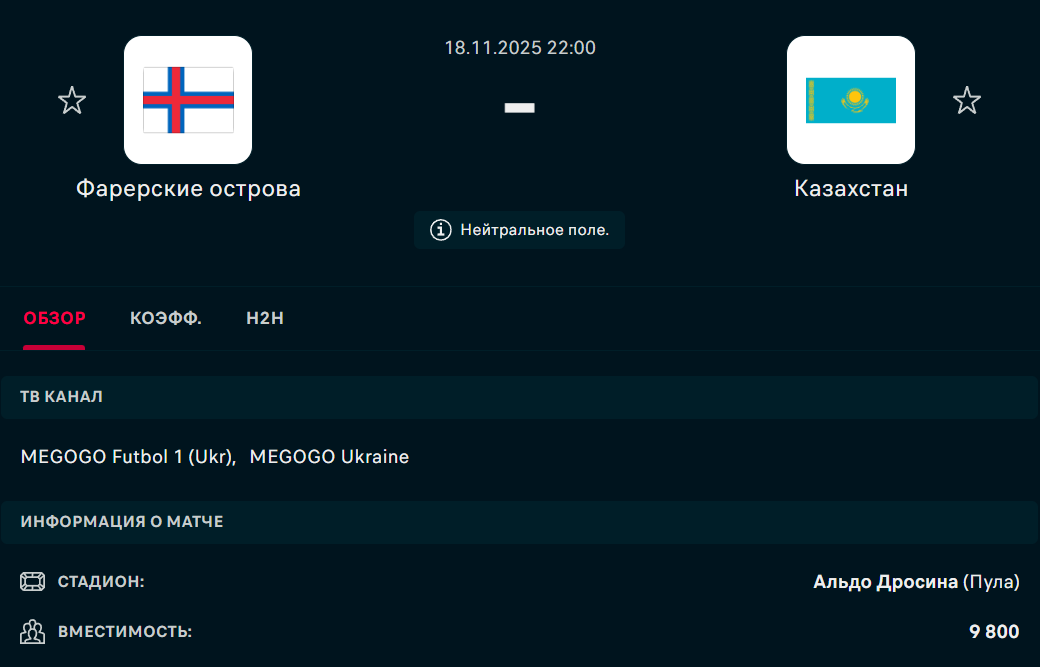 Игра пройдет сегодня, 18 ноября, на нейтральном поле - стадионе "Алдо Дросина" в хорватском городе Пула. Начало матча запланировано на 22:00 по времени Астаны.