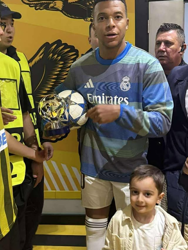 Публикацию с престижным трофеем в своем Instagram опубликовала супруга футболиста Тео Инасаридзе. Сначала они сделали совместную фотографию с Мбаппе, а затем уже сын Зарии примерил ее.