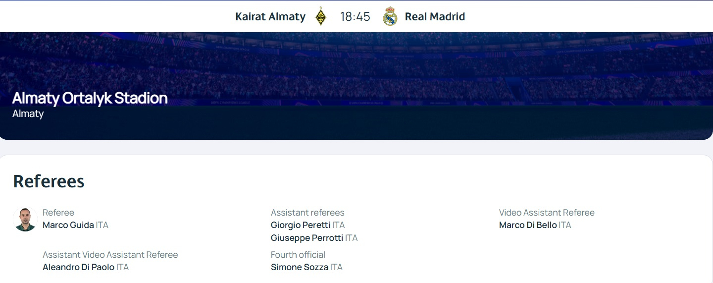 Кто будет судьей на матче "Кайрат" - "Реал"?
