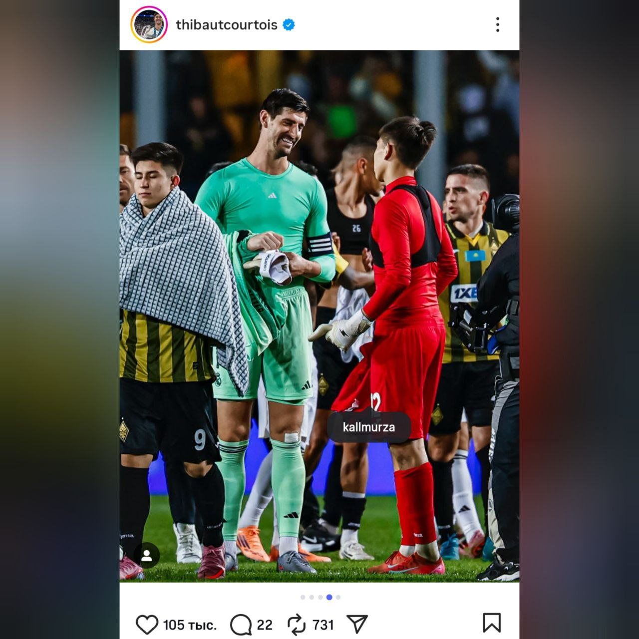 Куртуа поменялся футболками и отметил Калмурзу в инстаграме. У Куртуа больше 17 млн подписчиков.
