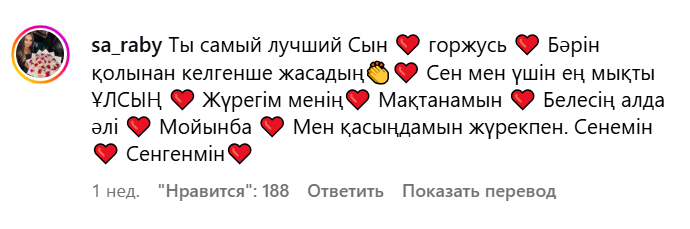 А после "Спортинга" завирусилось два сюжета с Шерханом. Мама игрока Сауле Рабаева поддержала его в комментариях инстаграма. Оказалось, что она работает на телевидении продюсером.