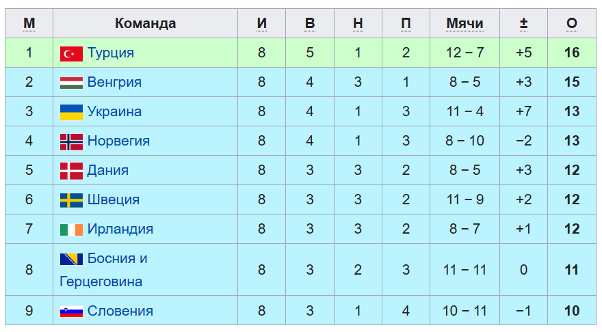 Для таблицы третьих мест не учитывался матч с последней командой, а Турция теряла очки с Латвией (1:1), поэтому им было никак без помощи Казахстана!