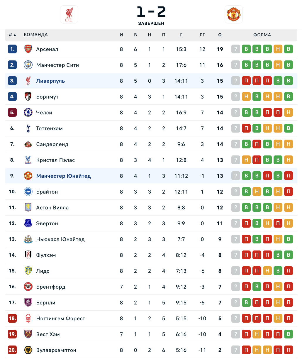 Манчестерцы впервые за 9 лет победили на "Энфилде", а для "Ливерпуля" это стало четвёртым поражением подряд - худшей серией клуба с 1987 года. Подопечные Слота ранее уступили "Кристал Пэлас", "Галатасараю" и "Челси", а теперь проиграли и команде Рубена Аморима.