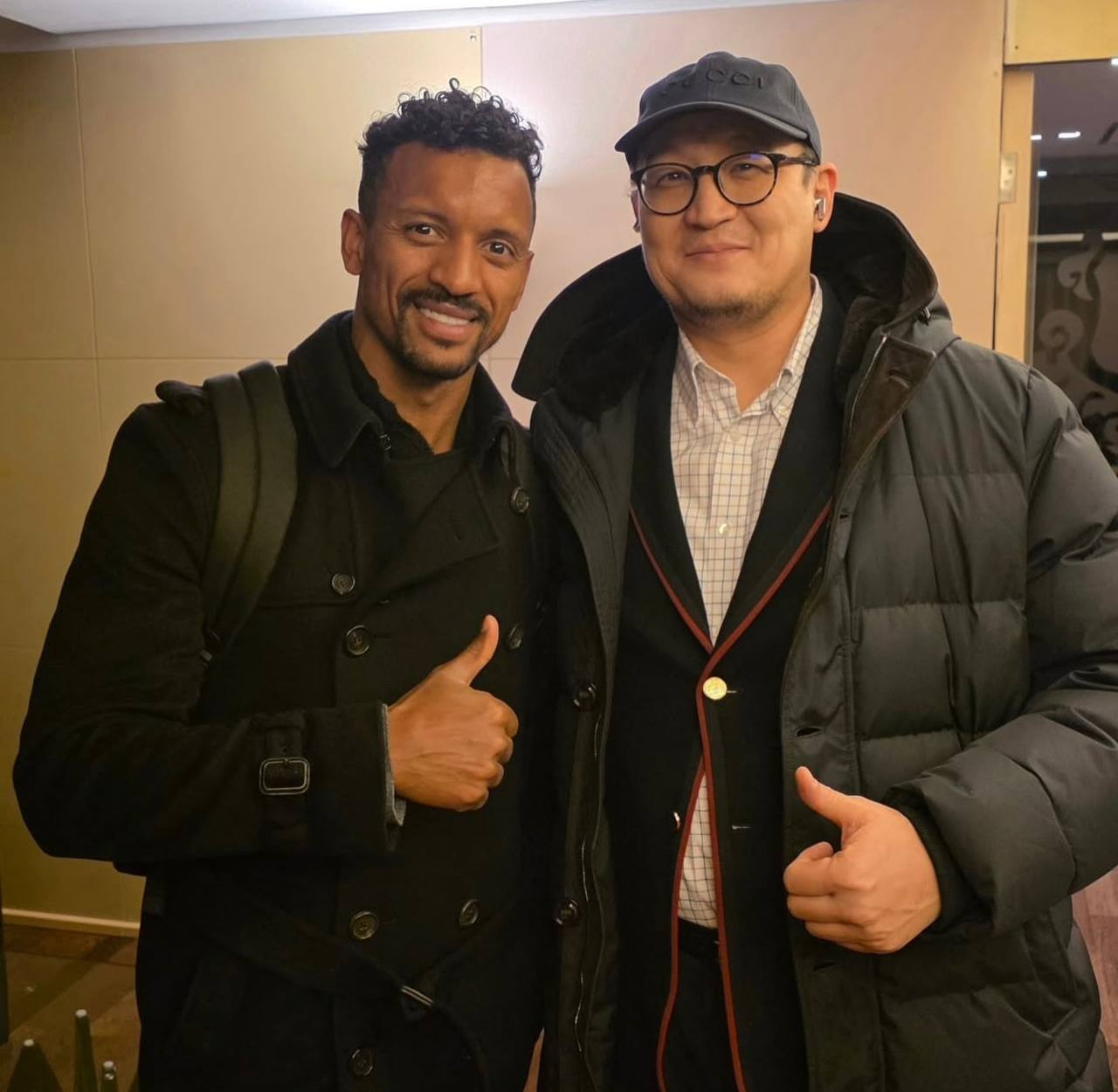 В соцсетях появилось фото из аэропорта. Рядом - известный политолог Ербол Едилов, который в футболе известен по работе в "Каспии" и в исполкоме КФФ.