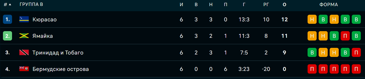 Островное государство, где проживает всего 156 тысяч человек, сыграла на выезде вничью с Ямайкой (0:0) и напрямую вышла на ЧМ-2026.
