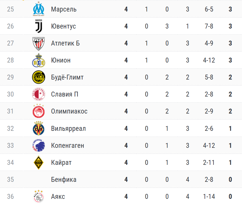 Впереди у алматинцев матчи с "Копенгагеном", "Брюгге", "Арсеналом" и "Олимпиакосом". Сейчас команда на 34-ой позиции в общей таблице.