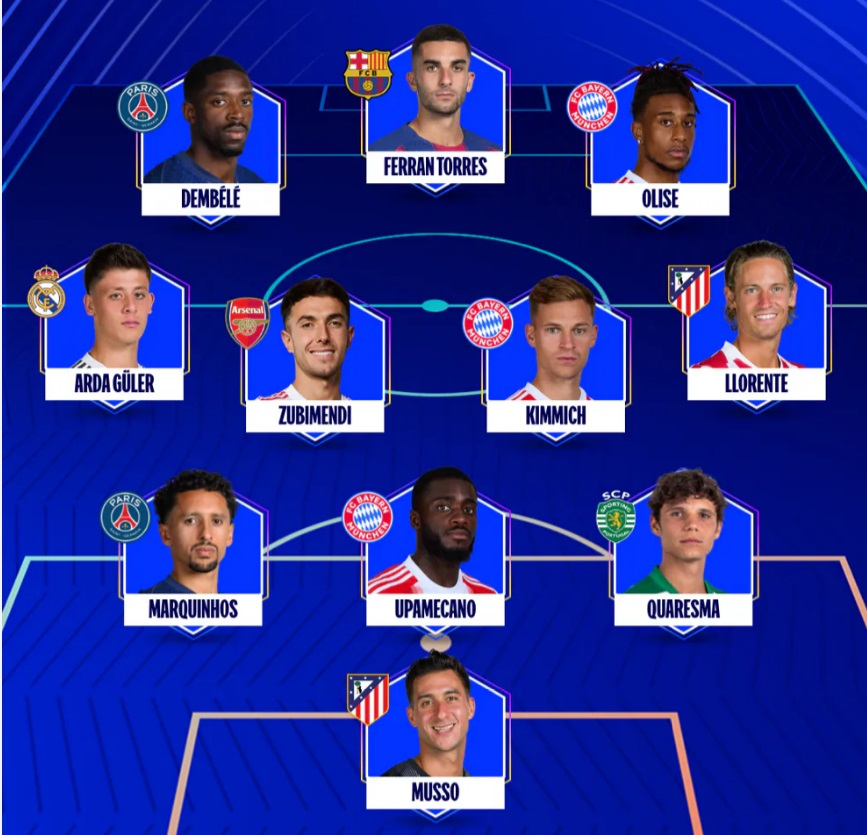 Европейский футбольный союз опубликовал состав символической сборной и имя лучшего футболиста игровой недели в Лиге чемпионов, сообщает Спорт Шредингера.