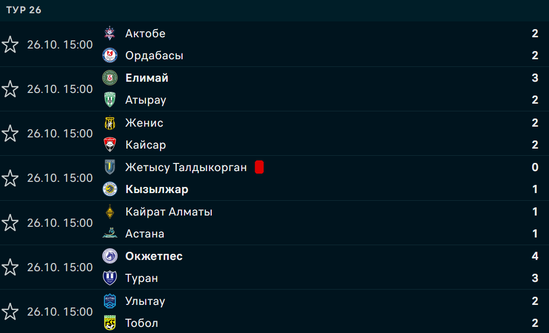 В казахстанской премьер-лиге состоялись матчи заключительного, 26-го тура, которые определили триумфаторов и неудачников сезона, сообщает Спорт Шредингера.