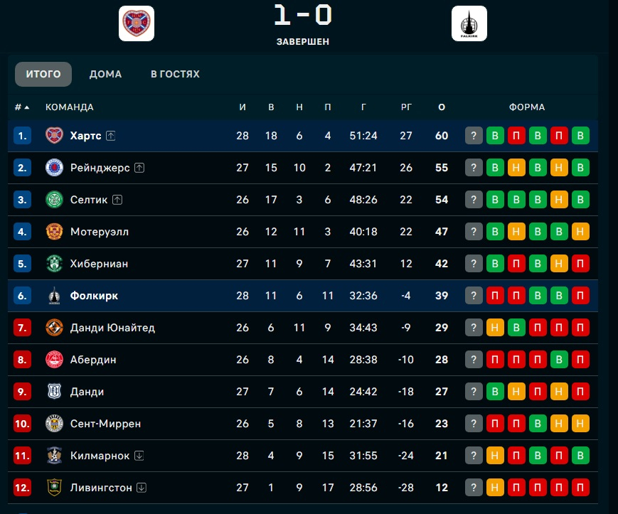 В таблице чемпионата "Хартс" идет первым – 60 очков в 28 турах. Преимущество над "Рейнджерс" составляет пять очков, у "рейнджеров" игра в запасе.