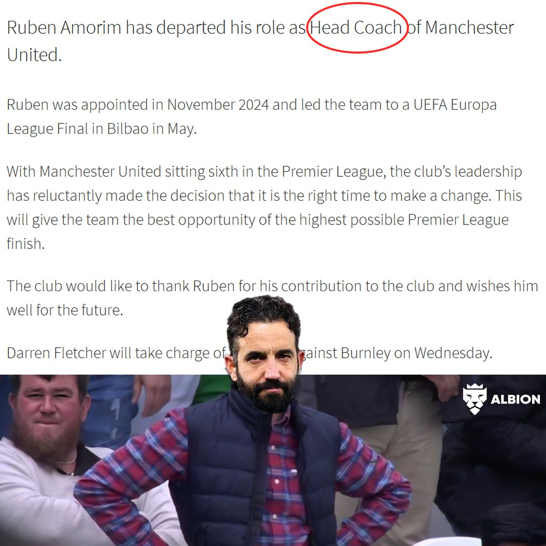 Аморим допустил ошибку, заявив, что пришёл в "МЮ" как менеджер. В официальном анонсе на сайте клуба была использована формулировка "главный тренер" - впервые после ухода сэра Алекса Фергюсона. В отличие от Эрика тен Хага, который имел право вето и активно продавливал трансферы, у Аморима такого влияния не было.