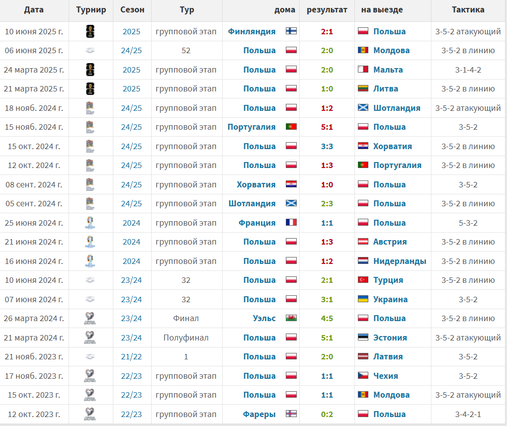🇵🇱 53-летний Пробеж в июне ушел из сборной Польши из-за конфликта с Левандовски, которого лишил капитанской повязки. Результаты тоже были не очень: 9 побед при 5 ничьих и 7 поражениях