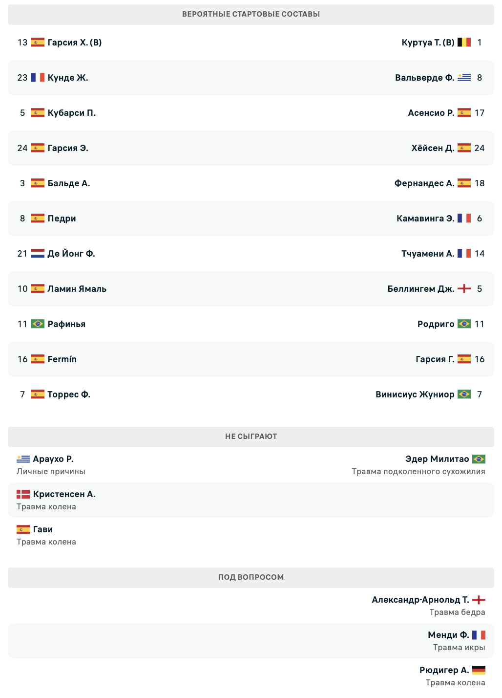 Ориентировочные составы на матч "Барселона" - "Реал"