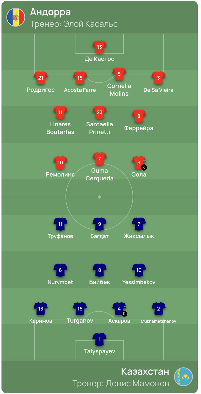 - ❌ 05.06.2025: Казахстан U-21 – Андорра U-21 1:0 (отбор)