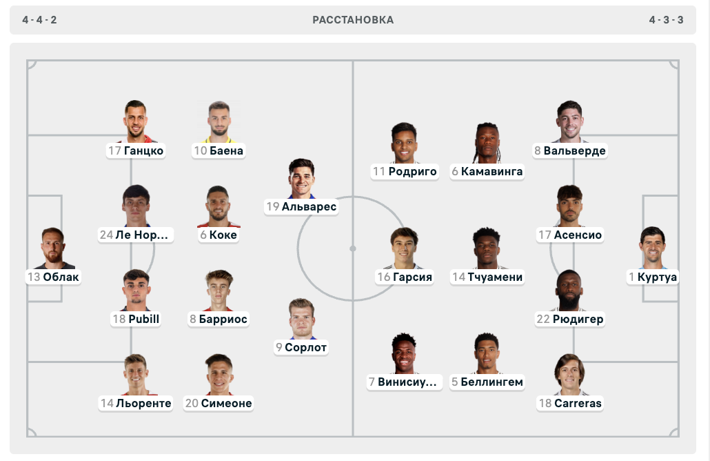 "Реал" подходит к полуфиналу на серии из четырёх побед подряд. В последнем туре команда Хаби Алонсо разгромила "Бетис" (5:1), вернув интенсивный прессинг и чёткую структуру в атаке. Отсутствие Килиана Мбаппе позволило использовать классического форварда - Гонсало Гарсия оформил хет-трик.