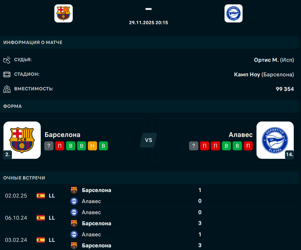 29 ноября на стадионе "Камп Ноу" состоится матч 14-го тура испанской Ла Лиги, в котором "Барселона" примет "Алавес", сообщает Спорт Шредингера.