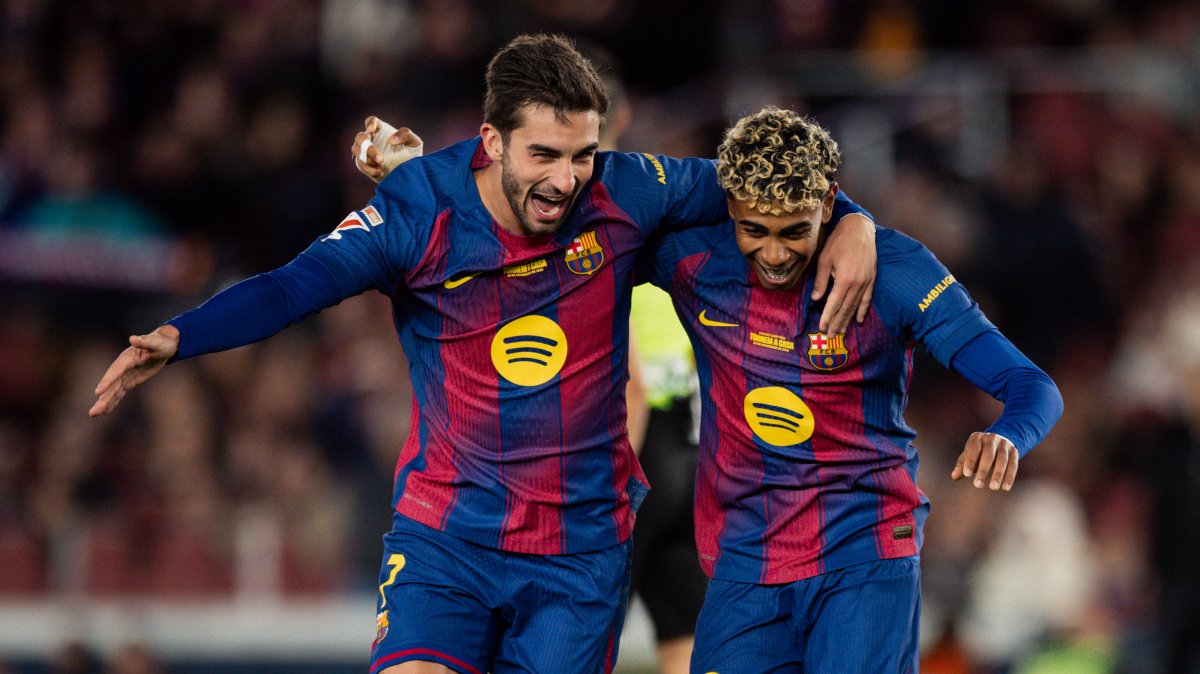 "Барселона": Гарсия, Бальде, Гарсия, Кубарси, Кунде, Касадо, де Йонг, Ольмо, Рафинья, Левандовски, Ямаль