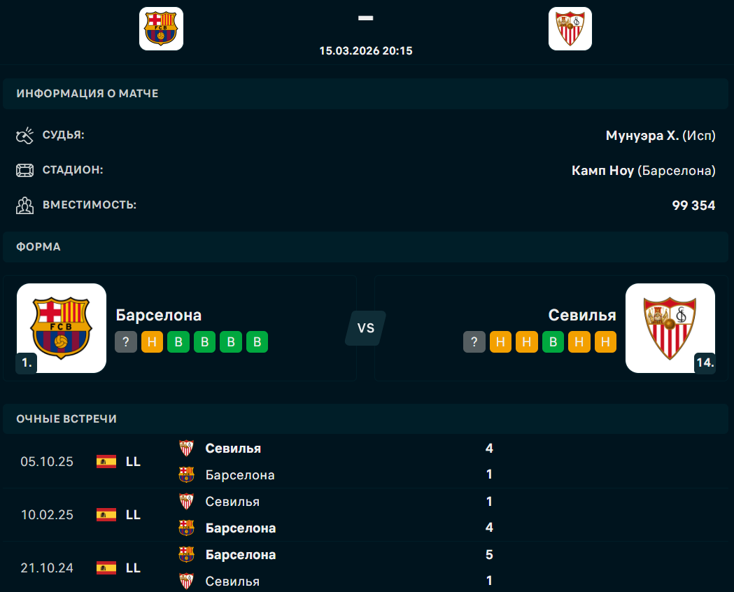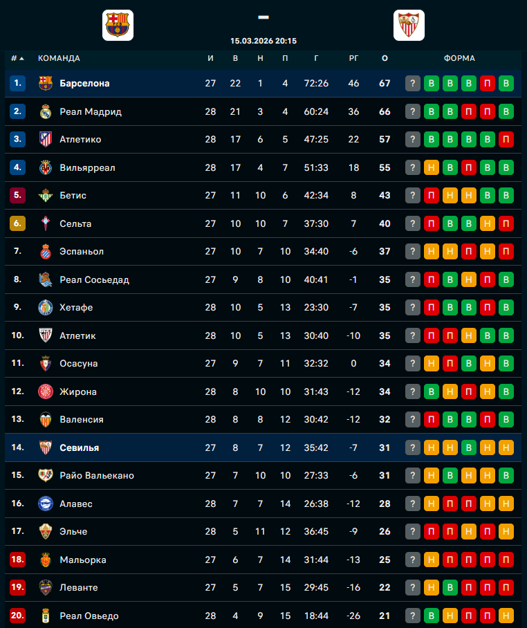 "Барселона" - "Севилья": Форма команд и турнирное положение команд