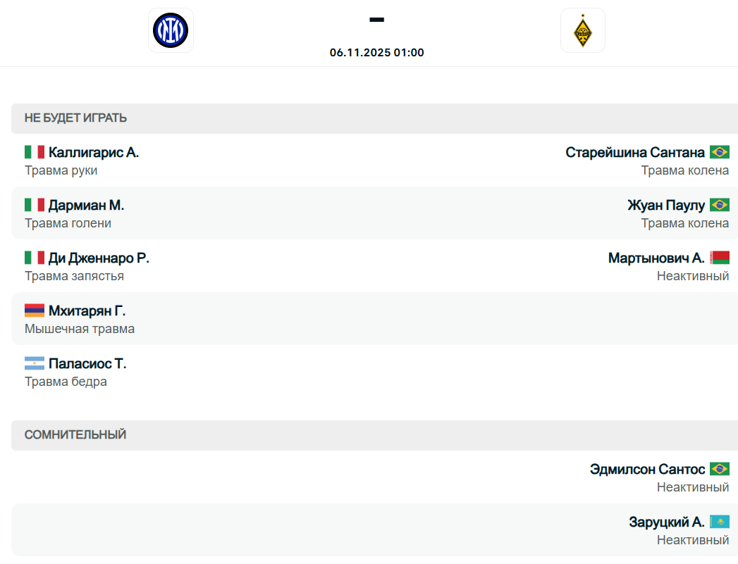 В ночь с 5 на 6 ноября в Милане состоится матч четвертого тура общего этапа Лиги Чемпионов, в котором итальянский "Интер" примет алматинский "Кайрат", сообщает Спорт Шредингера.