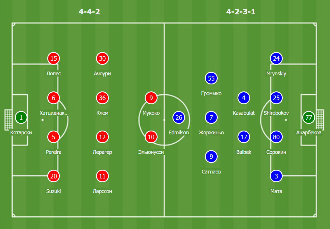 "Кайрат": Анарбеков, Мрынский, Широбоков, Сорокин, Мата, Касабулат, Байбек, Громыко, Жоржиньо, Сатпаев, Эдмилсон.