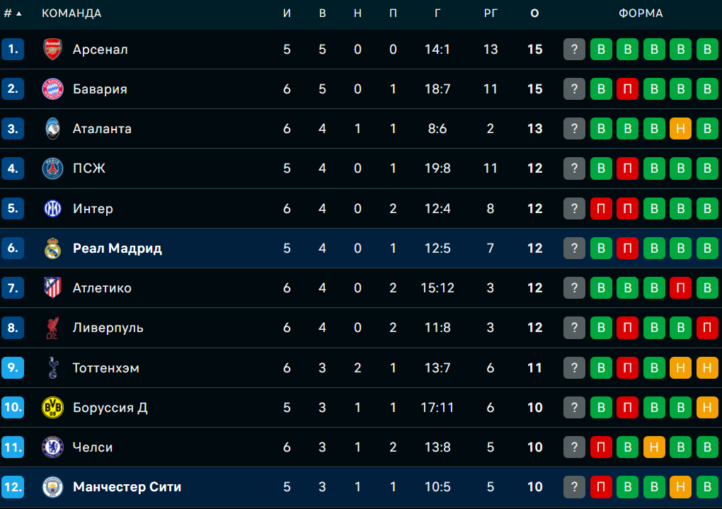 Это центральная игра 6-го тура общего этапа Лиги чемпионов. После пяти туров англичане с 10 очками находятся на 12-ой позиции. У мадридцев 12 очков и пятая строчка.