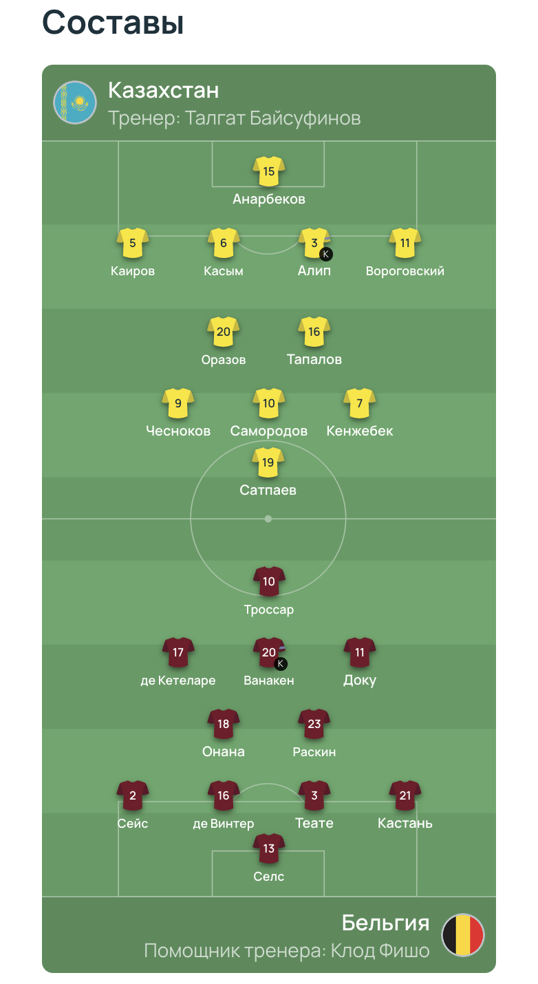 К слову, после разгромного поражения от Бельгии на выезде (0:6) временно исполняющим обязанности главного тренера стал Талгат Байсуфинов, который уже дважды возглавлял национальную сборную - в 2016–2017 и 2020–2022 годах.