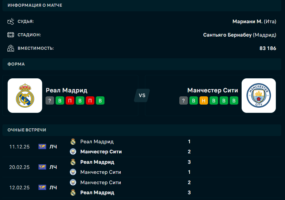 "Реал" - "Манчестер Сити": форма и составы команд