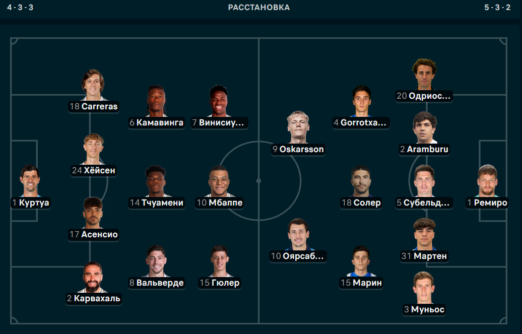 "Реал" - "Реал Сосьедад": Составы команд