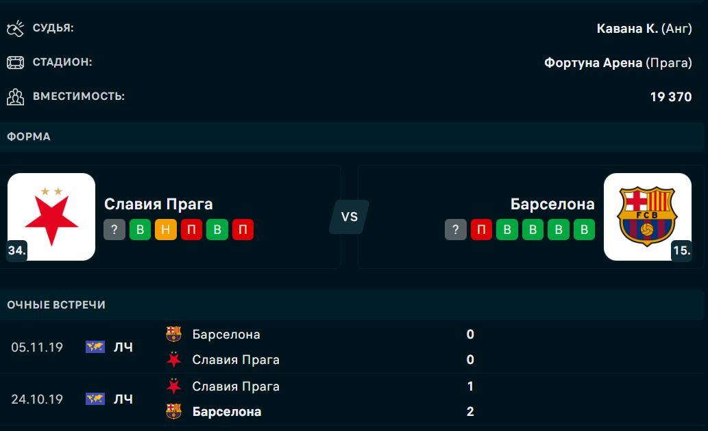 Прямая трансляция матча "Славия" - "Барселона" в Лиге чемпионов