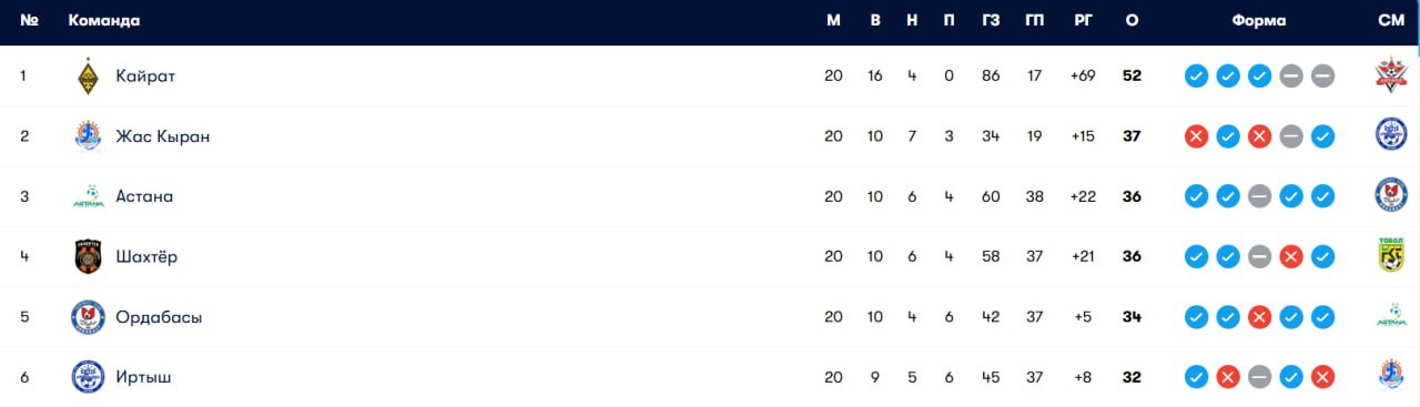 В середине сезона алматинцы считались солидным претендентом на серебро. Текущий отрезок лишил их радужных перспектив, команда взяла семь очков в последних пяти встречах. "Жас Кыран" сохраняет статус главного фаворита, ведь занимает заветную строчку прямо сейчас – и имеет на одно очко больше, чем следующие два претендента. Однако календарь у команды Сергея Кирова непростой – в концовке сезона матчи с другими претендентами "Иртышом" и "Астаной".