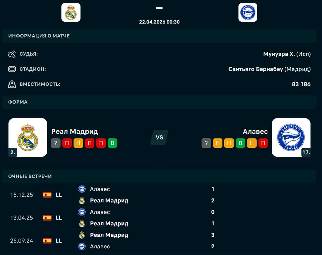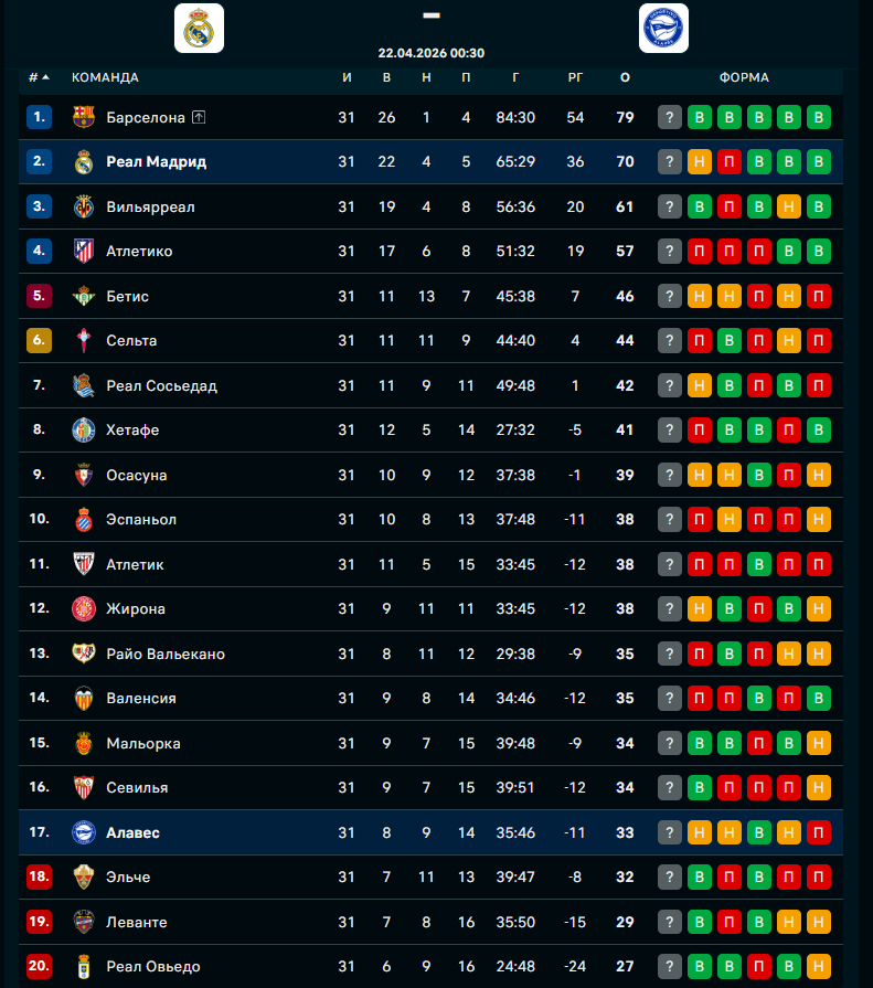"РЕАЛ" - "АЛАВЕС": ФОРМА И ТУРНИРНОЕ ПОЛОЖЕНИЕ КОМАНД