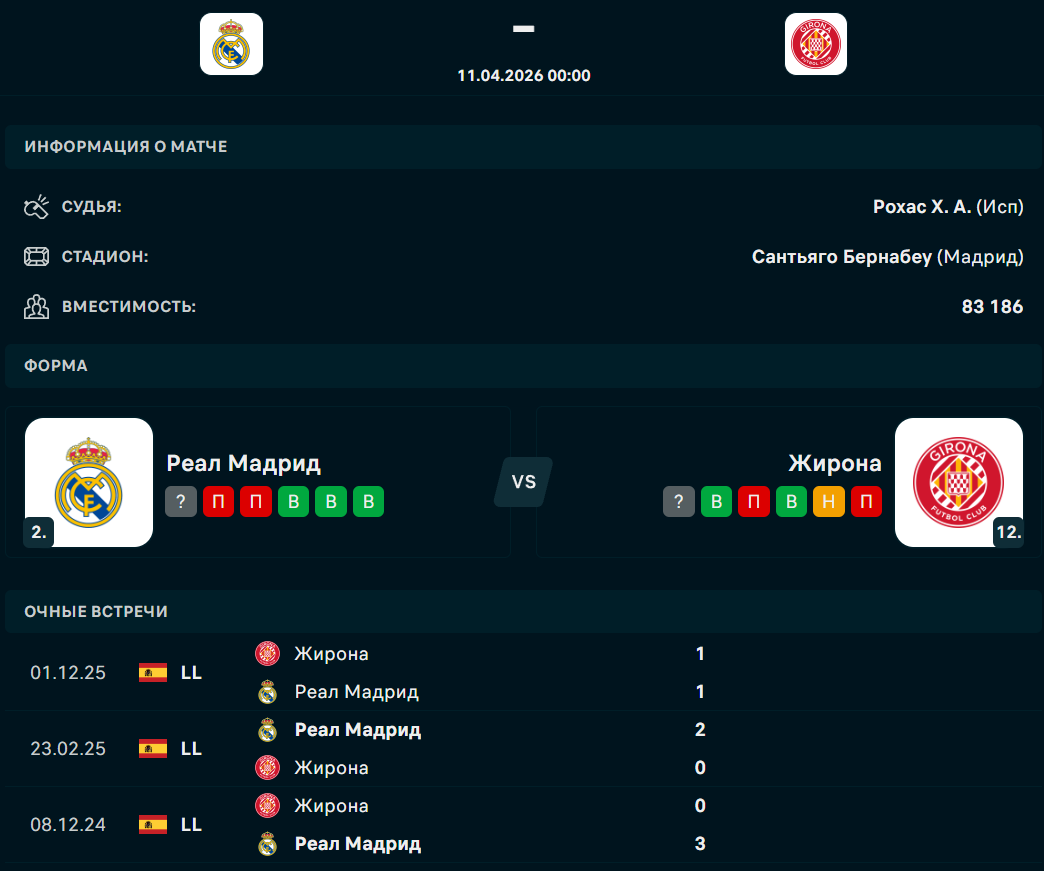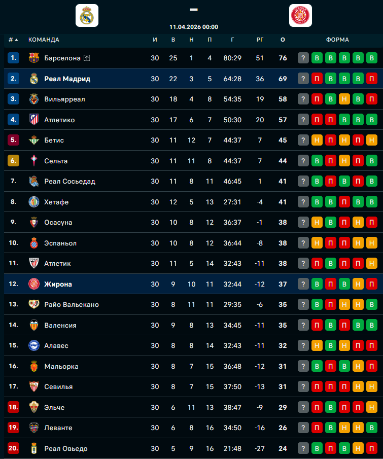 "РЕАЛ" - "ЖИРОНА": ФОРМА И ТУРНИРНОЕ ПОЛОЖЕНИЕ КОМАНД