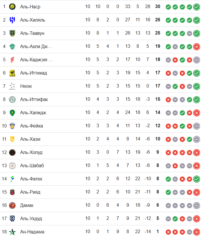 "Аль-Хиляль" сейчас занимает второе место с 26-ю очками.