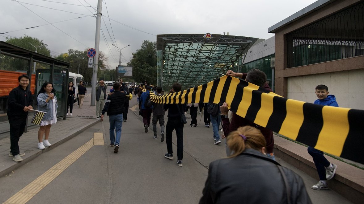100 метров – это точно рекорд для футбольной атрибутики в истории Казахстана. Сегодня, перед важнейшей игрой "Кайрат" – "Реал", по Алматы прошли десятки людей, которое несли это чудо.