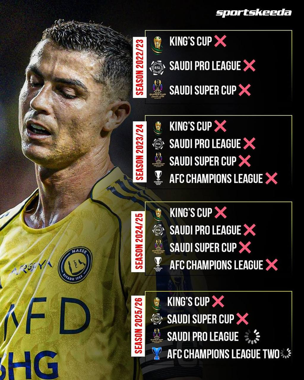 Это уже четвертый подряд вылет команды Роналду с турнира. Португалец по-прежнему не поднимал над головой клубных трофеев с момента переезда в Саудовскую Аравию. Как отмечает The Touchline, суммарно за этот период коллектив из Эр-Рияда мог завоевать 13 титулов, но ни разу не добился триумфа ни в одном из турниров.