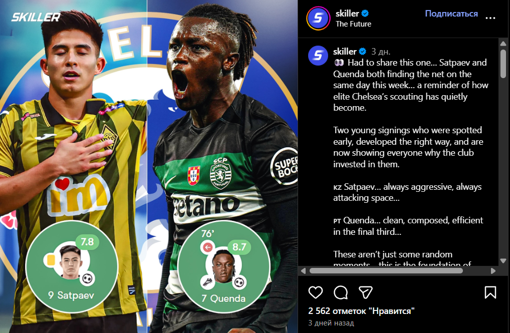Сатпаев и Квенда оба забили в один и тот же день на этой неделе... напоминание о том, насколько тихо и эффективно работает скаутская служба "Челси". Два молодых новичка, которых заметили рано, правильно развивали, и теперь они показывают всем, почему клуб вложился в них.