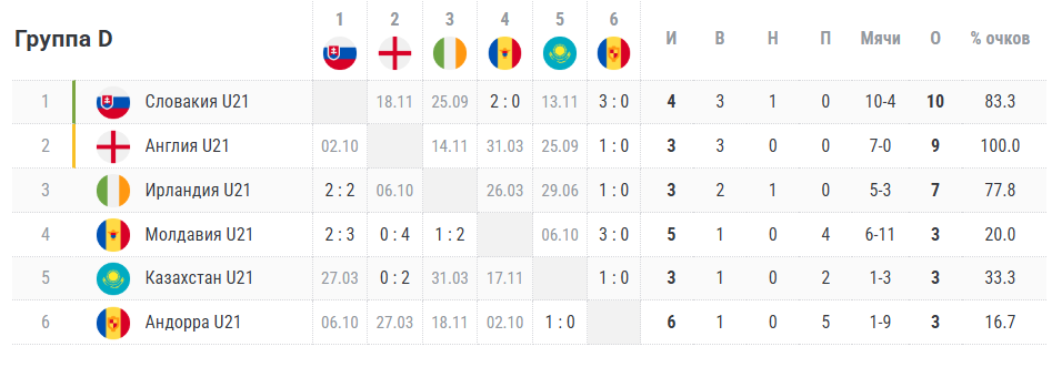 Казахстан занимает пятое место в группе, набрав три очка и опережая Андорру лишь по разнице мячей. При этом, в домашнем матче казахстанцы обыграли андоррцев со счетом 1:0. В пассиве сборной также поражение от Англии (0:2).