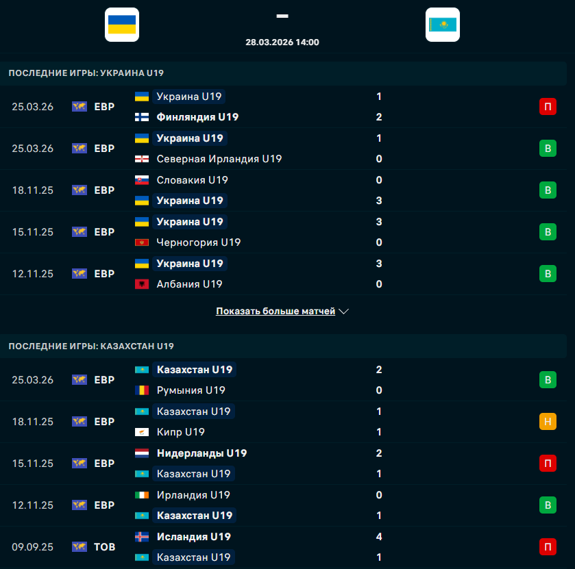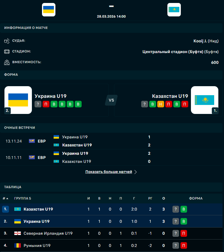 Сегодня, 28 марта, состоится матч отборочного турнира к чемпионату Европы U-19, в котором встретятся сборные Украины и Казахстана, сообщает Спорт Шредингера.