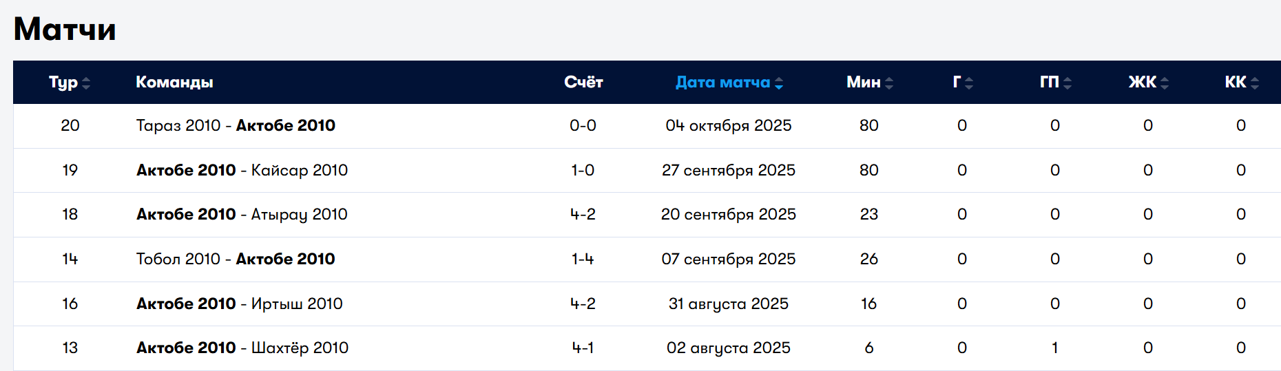Мусе было 15 лет - родился 18 апреля 2010 года. За команду "Актобе" U-16 он дебютировал 2 августа, отметившись ассистом. Последний матч провел 4 октября.
