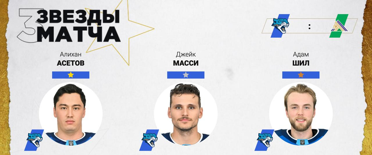 Нападающий Алихан Асетов забросил победную шайбу и стал первой звездой матча.