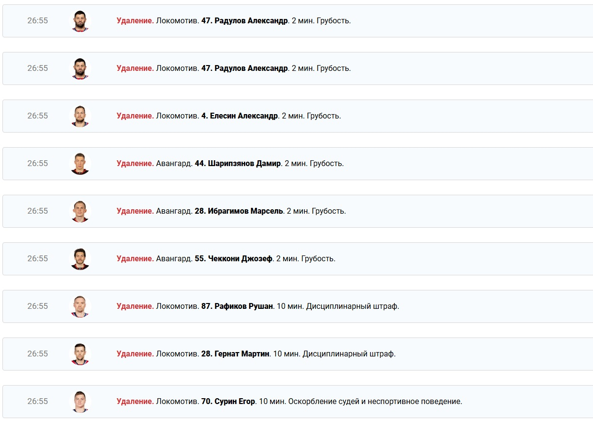 В драке поучаствовали все полевые игроки. В итоге арбитры выписали всем хоккеистам малый штраф за "грубость", а особо активным дали дополнительные наказания.