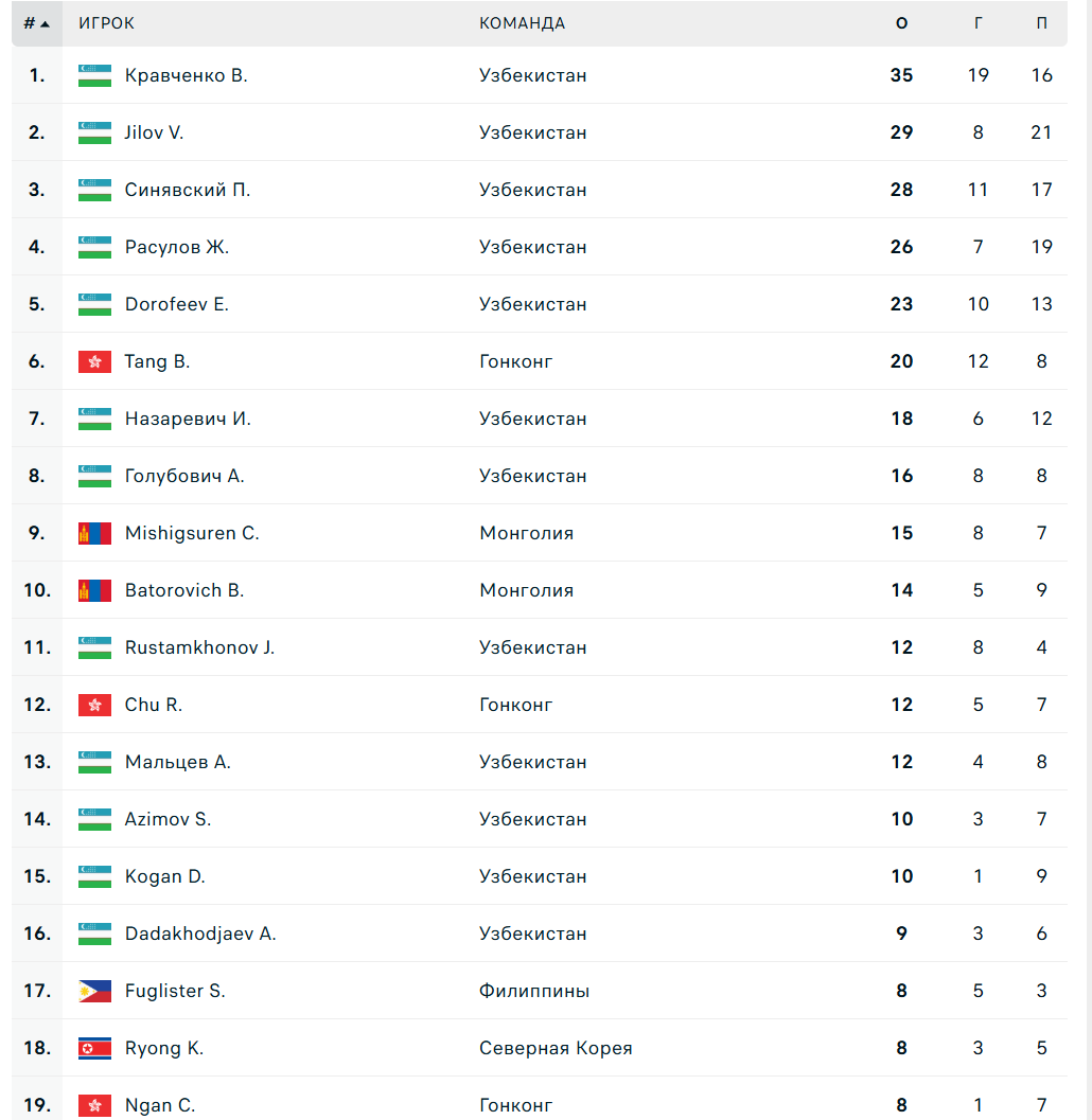 Хоть какое-то сопротивление узбекская команда встретила только в последнем туре - скромные 9:4 против Гонконга.