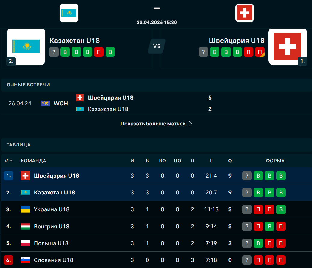Казахстан - Швейцария: Форма и турнирное положение команд