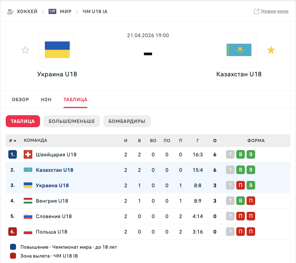 Затем Казахстан сыграет с Швейцарией (23 апреля, 15:30) и Словенией (24 апреля, 15:30). В топ-дивизион выйдет только лучшая команда.