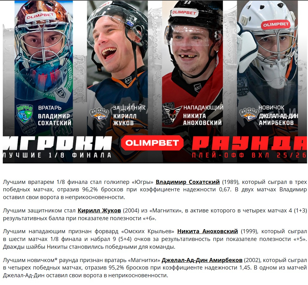 В плей-офф Амирбеков включил режим Бога и выиграл уже пять из пяти матчей подряд. В первом раунде всухую выбили прошлогодних чемпионов из "Торпедо", а Амирбеков был признан лучшим новичком первого раунда: