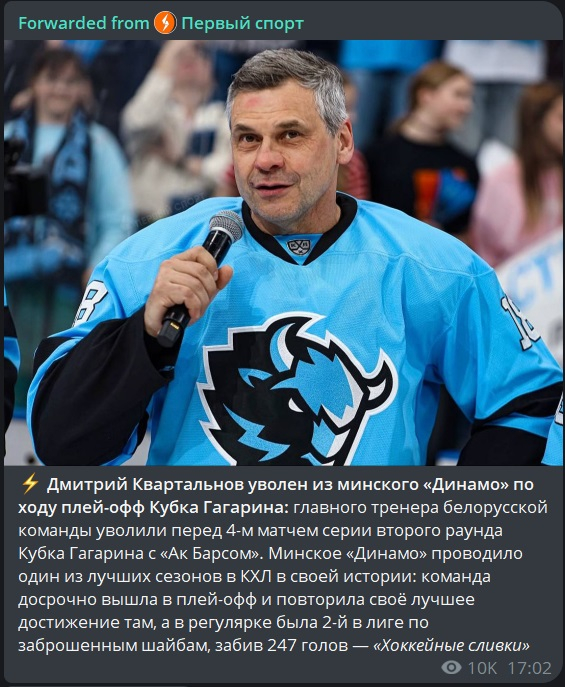 Перед четвертым и потенциально заключительным матчем серии в ряде телеграм-каналов появилась информация, что "Динамо" уволило главного тренера Дмитрия Квартальнова.